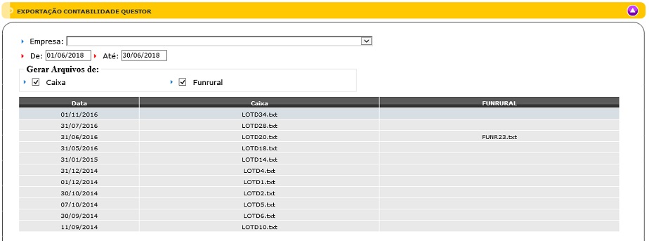 A tela permite gerar aquivos de NF de Caixa e Funrural.