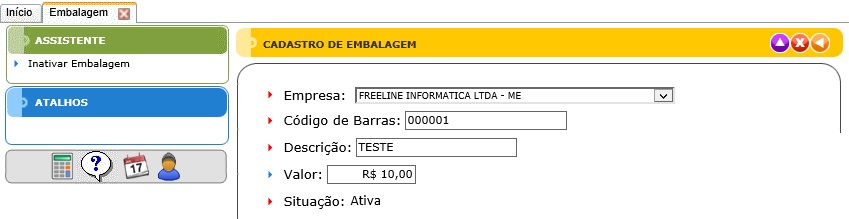 - Para Editar, o usuário deve dar um druplo clique na grade ou clicar no ícone de editar no navegador. Ao editar os dados desejados da Embalagem selecionada, clicar no botão de alterar para confirmar a alteração.
