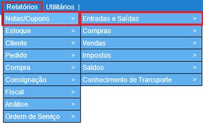 Para acessar, use o Menu “Relatórios - Notas/Cupons - Entradas e Saídas”.