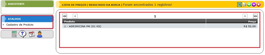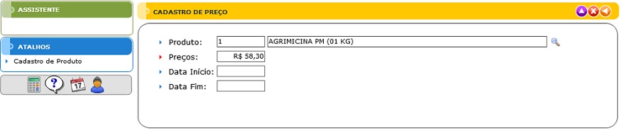 - Atalhos: Fornece acesso ao cadastro de produtos.