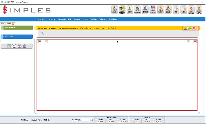 - Grade: Mostra todos Navios conforme os filtros descritos anteriormente.