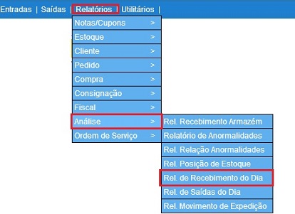 Para acessar este relatório é preciso ir ao Menu “ Relatórios - Análise - Relatório Recebimento do Dia"